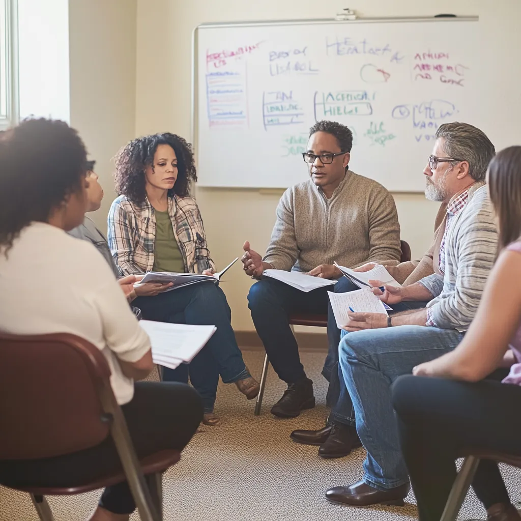 Group therapy provides a supportive and structured environment where individuals can share experiences, build coping skills, and gain insight from others facing similar challenges. Our sessions focus on:
